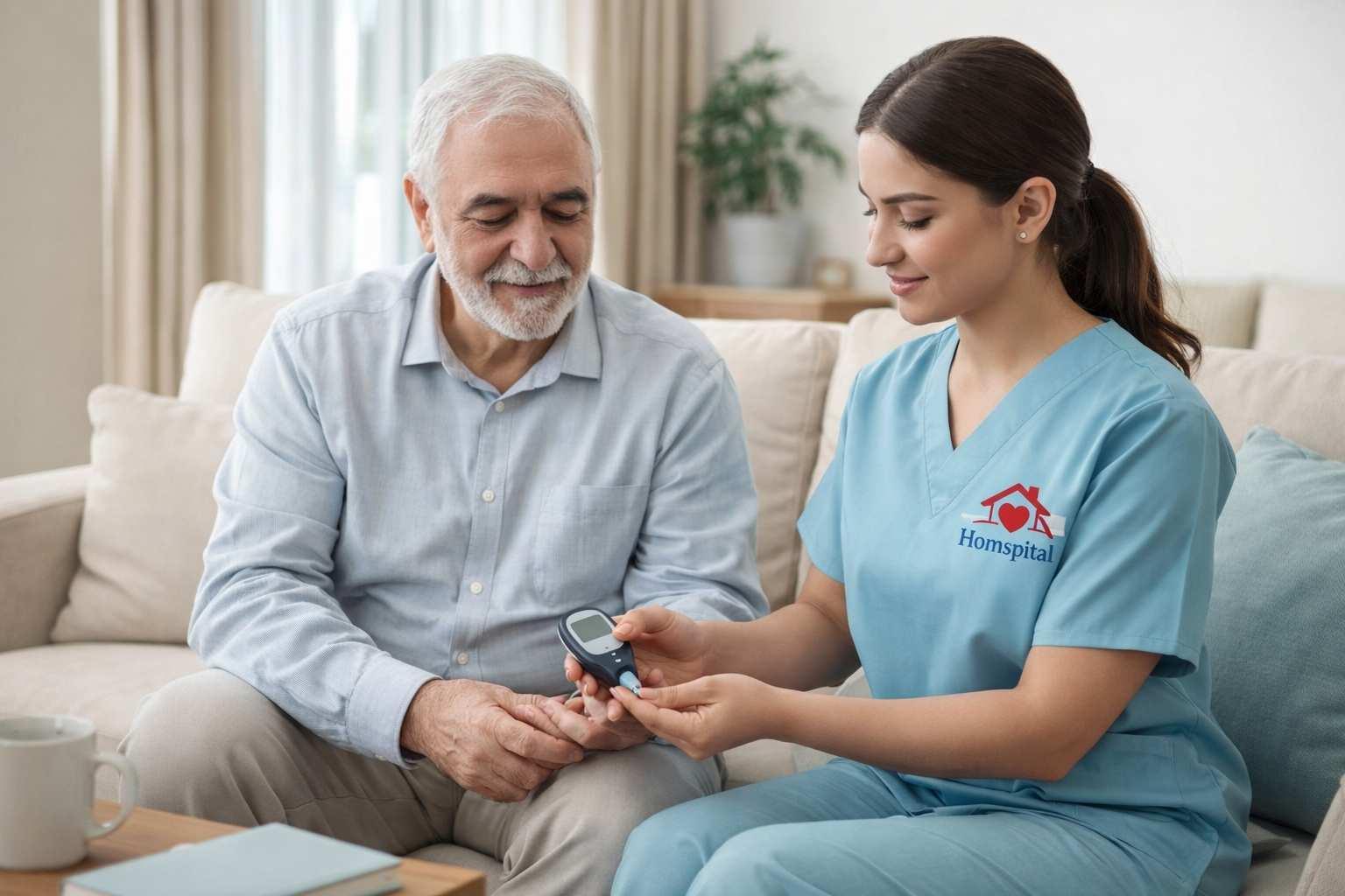 Diabetes management at home is a structured clinical service that supports patients in controlling blood glucose levels, preventing complications, and maintaining daily health through continuous monitoring, medication management, and professional guidance.